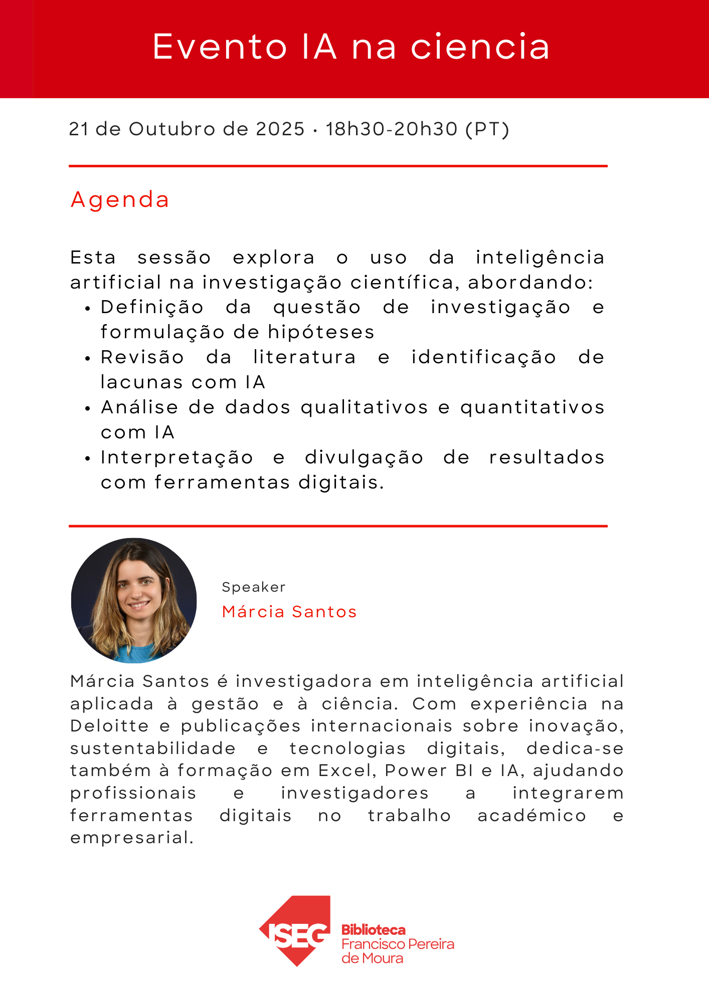 21/10/2025, 18H30-20H30 | Evento IA na ciencia (PT) | Presencial (Auditório 5) | Inscrição | Agenda |