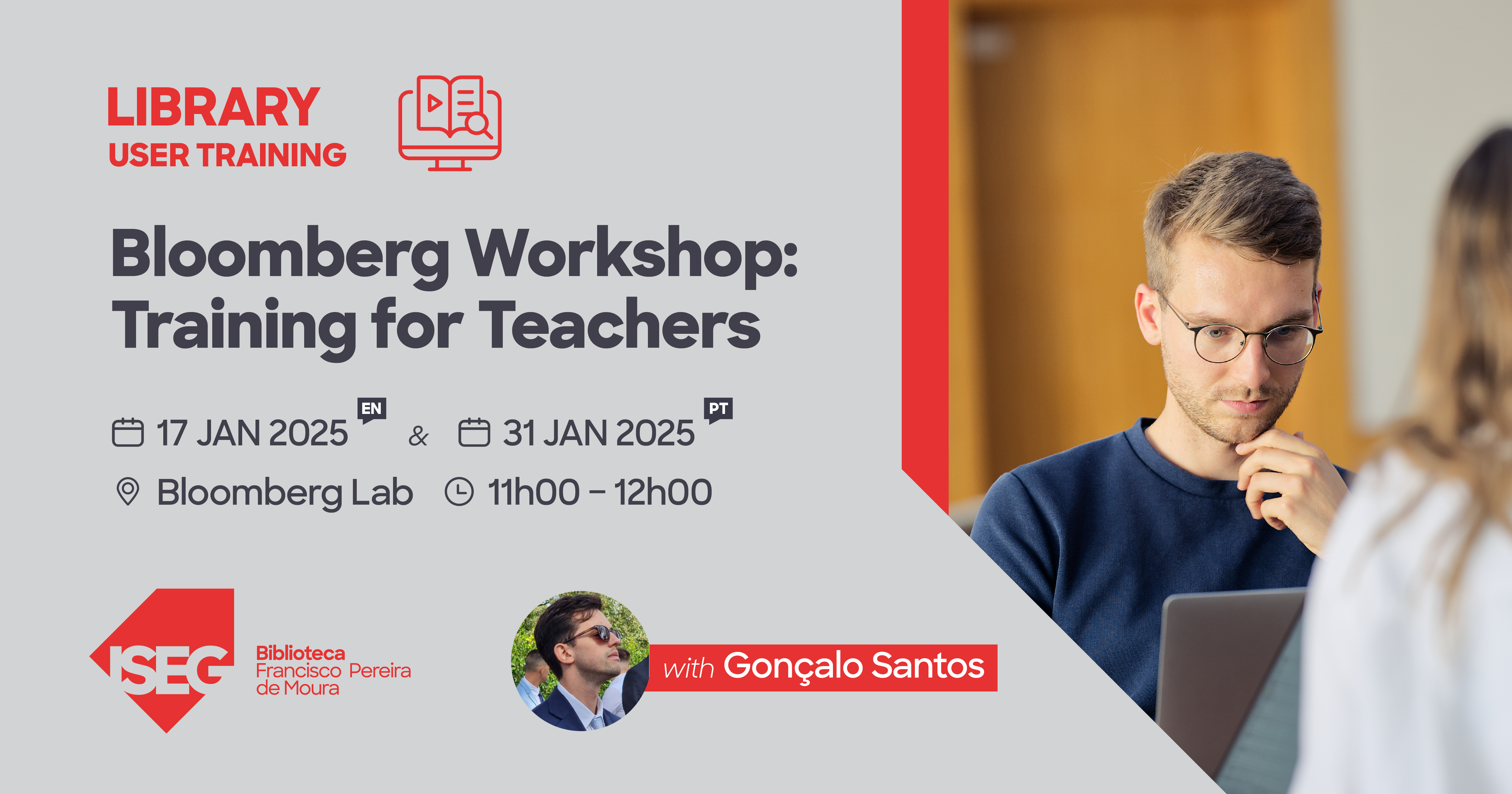 On 17 and 31 January, two in-person training sessions for faculty will be held in the Bloomberg Lab, from 11:00 AM and 12:30 PM. The session on 17 January will be delivered in English and the one on 31 January will be in Portuguese.