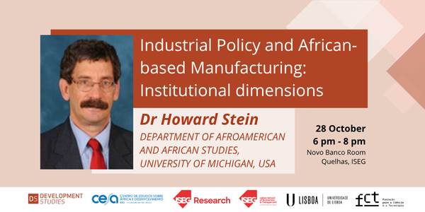 On 28th October, another seminar in the series of Development Studies Seminars 2025-2026. Entitled "Industrial Policy and African-based Manufacturing: Institutional Dimensions. The event will feature the participation of Professor Howard Stein (Department of African American and African Studies, University of Michigan, USA).