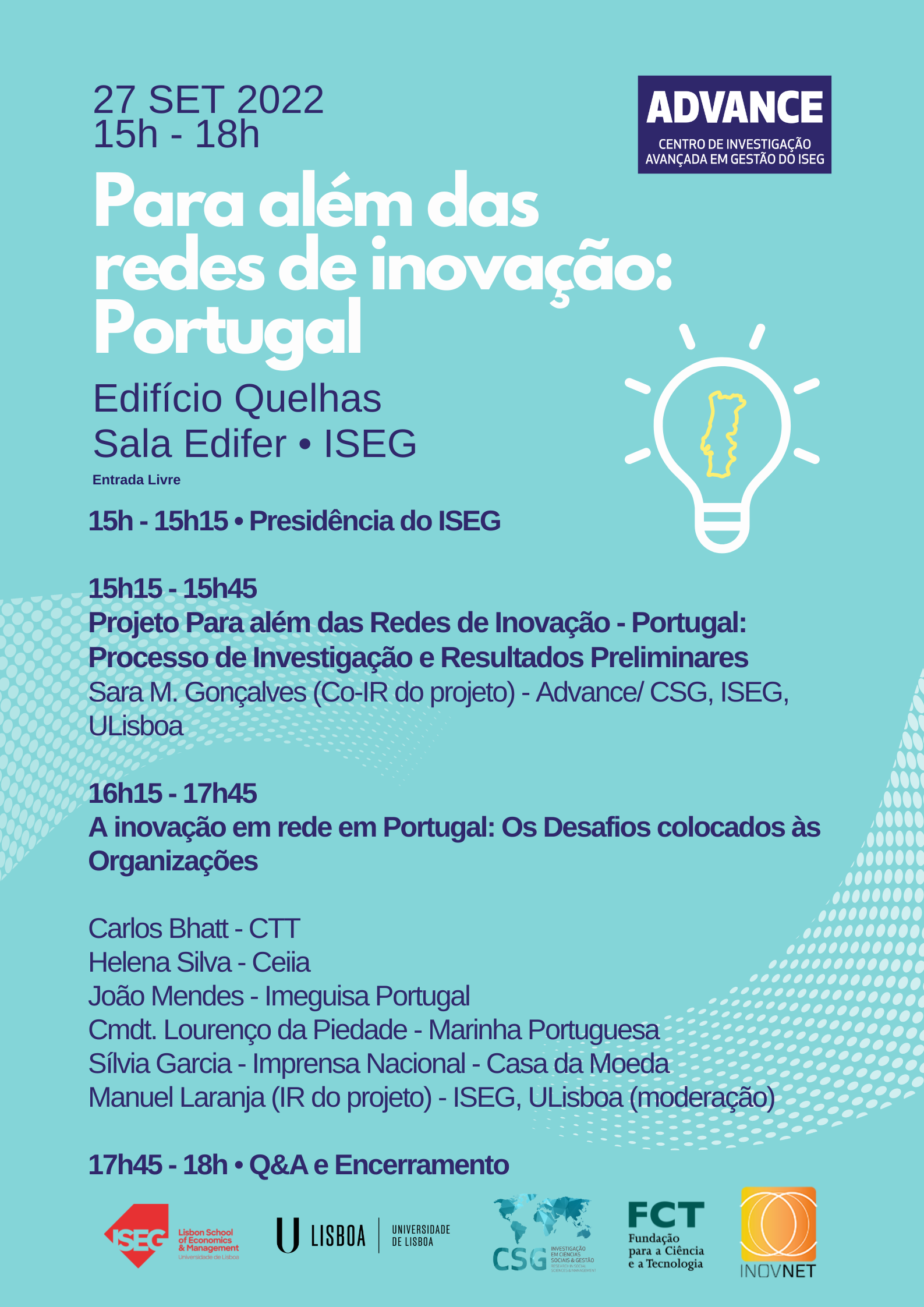 O projeto Para além das redes de inovação: Portugal – InovNet Portugal estuda as redes que se criam entre diferentes atores, sejam eles empresas, organismos públicos, outras organizações ou até indivíduos, para desenvolverem conjuntamente processos de inovação.