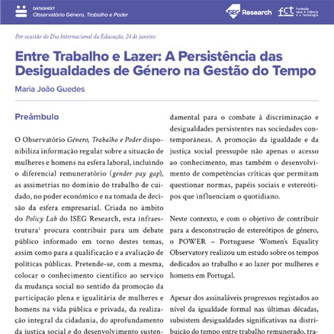 Com esse objetivo, o Observatório Género, Trabalho e Poder: